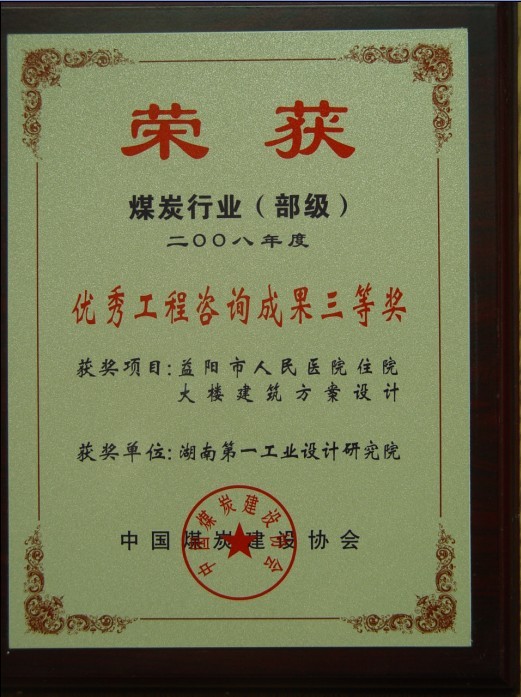湖南省優(yōu)秀設(shè)計(jì)表?yè)P(yáng)金獎(jiǎng)(1984)
